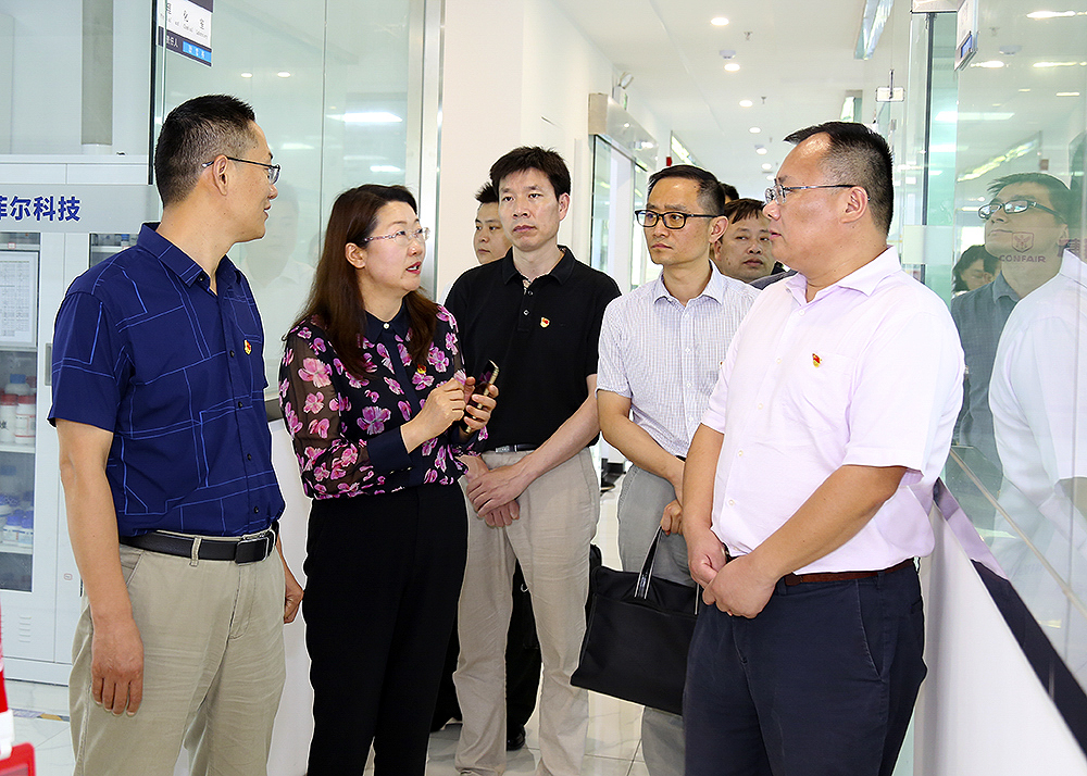 Members of the Party Branch of Agricultural Insurance Department and Expert Center visited the Party building culture exhibition hall and environmental protection testing laboratory of Yuanchen Technology to understand the business and production situation of the enterprise, and listened to the introduction of the Party building work of the enterprise by Ms. Liang Yan, the general manager and secretary of the Party Branch of Yuanchen Technology.