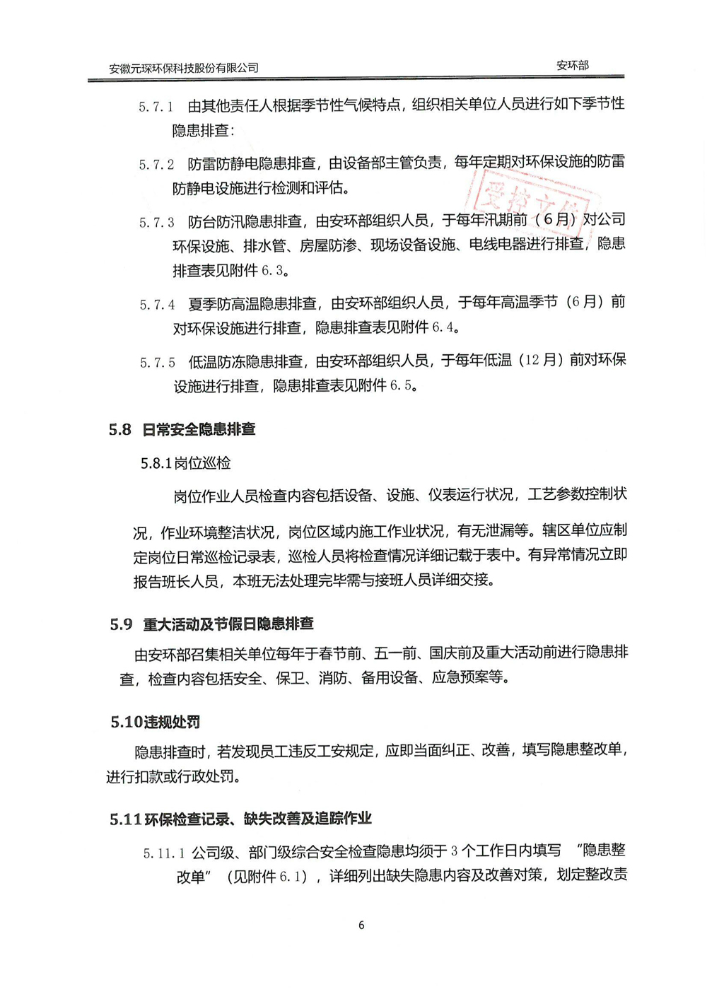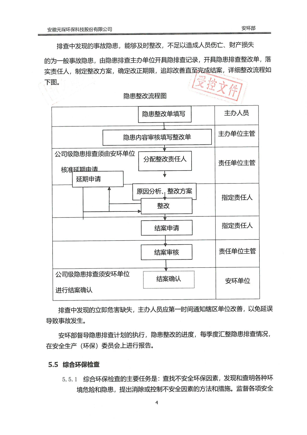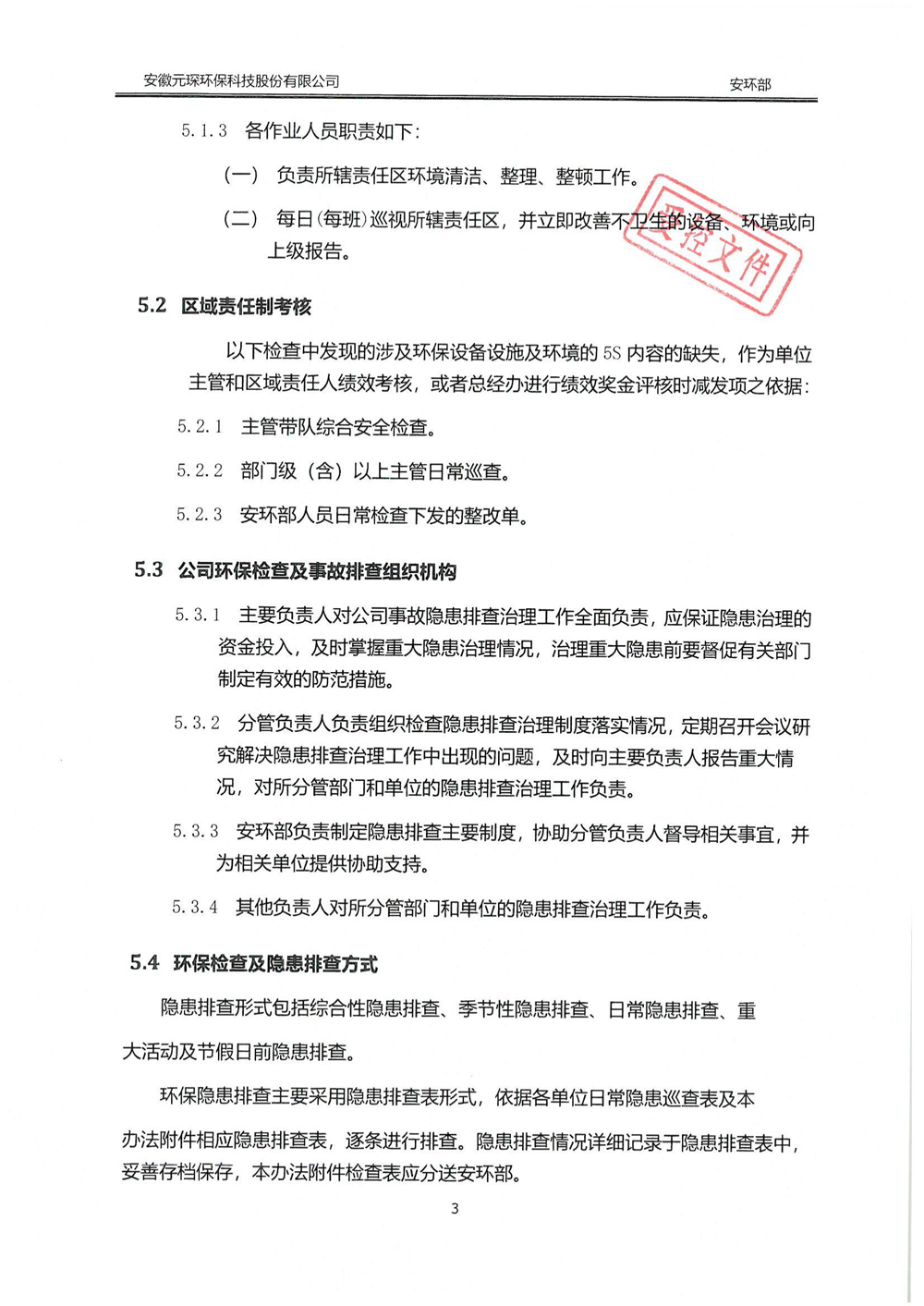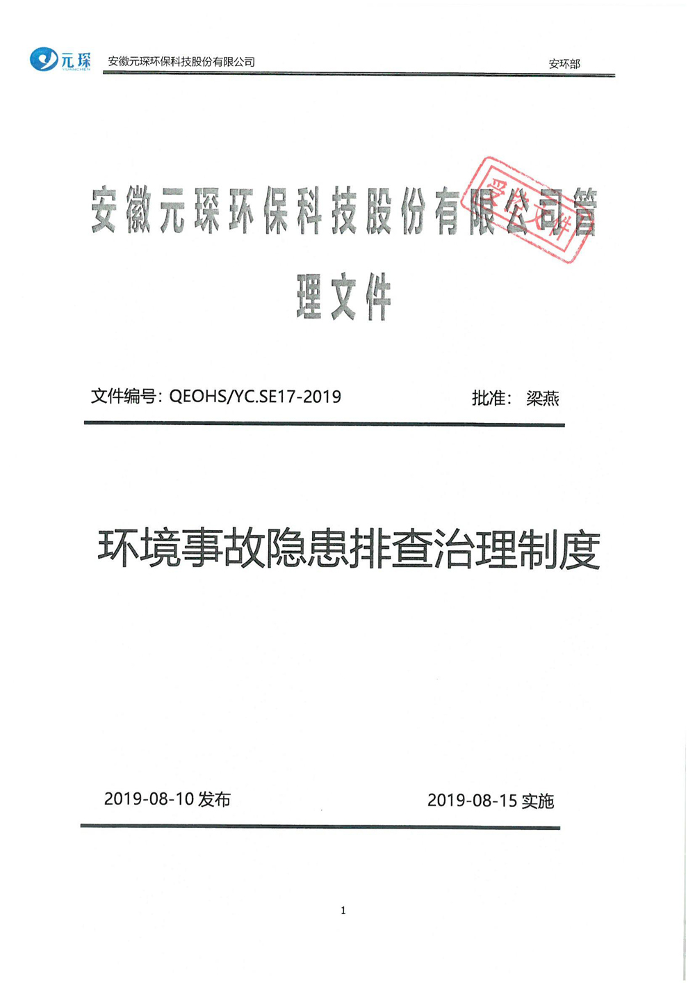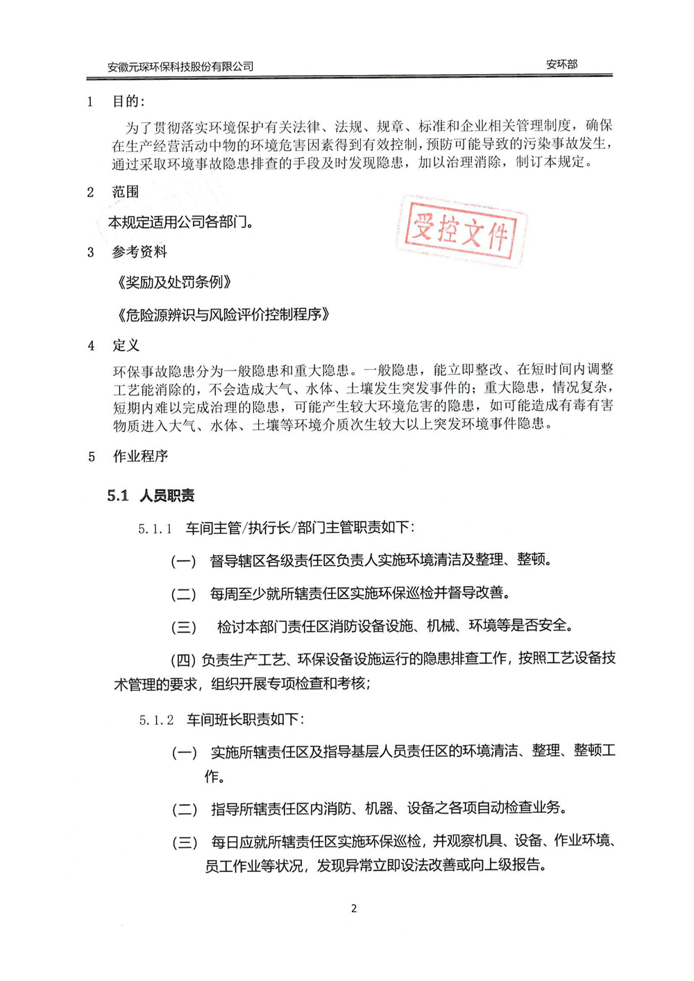 安徽金年会体育环保科技股份有限公司环境事故隐患排查治理制度