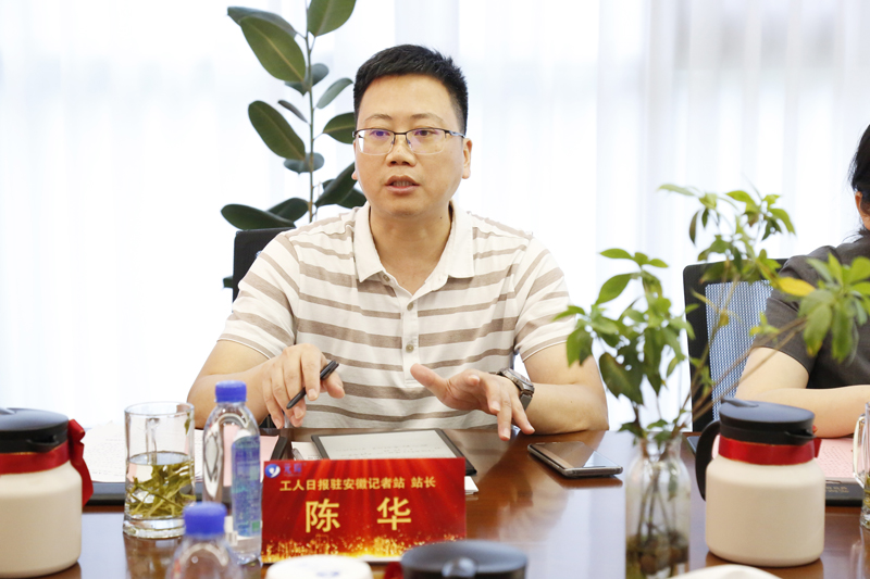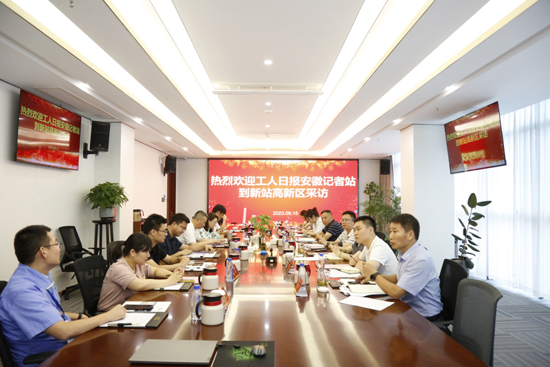 8月15日下午,工人日报驻安徽记者站站长陈华一行来新站高新区采访。市总党组成员、经审会主任刘晓蓉,市总宣传教育部部长王淼,区总工会主席季红军,副主席梁华友等陪同。