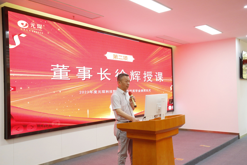 接着,董事长徐辉登台授课。董事长深入浅出地阐述了企业发展中人才培养的重要性,鼓励学子们不仅在学业上精益求精,更要培养团队合作意识、创新能力和互联网思维,为社会的发展贡献自己的力量。