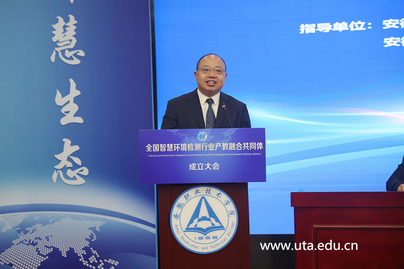 为深入贯彻党的二十大精神,落实中共中央办公厅、国务院办公厅《关于深化现代职业教育体系建设改革的意见》文件精神,11月25日,由安徽金年会体育环保科技股份有限公司、安徽环境科技集团股份有限公司、合肥工业大学、安徽职业技术学院牵头,联合相关行业协会、组织、高等学校、科研机构及环保相关企业等百余家单位共同组建“全国智慧环境检测行业产教融合共同体”,共同体成立大会在安徽职业技术学院举行。