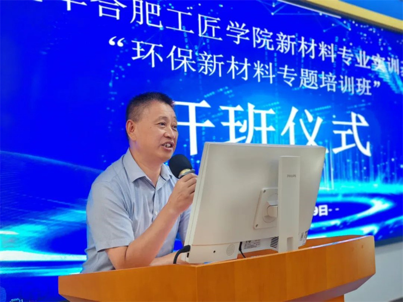 2024年9月9日—9月10日,合肥工匠学院新材料专业实训基地成功举办第一期“环保新材料专题培训班”。合肥市职工大学党委副书记、副校长申广胜,合肥市生态环境保护协会党支部书记、常副会长裴先长,新站高新区总工会副主席梁华友,新站高新区环境生态分局副局长张广以及安徽金年会体育环保科技股份有限公司董事长徐辉出席开班仪式。